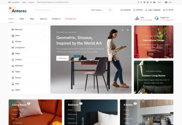 Antares Modern Theme For Furniture And Décor Store Nulled – Modern multipurpose WooCommerce theme for furniture, decor, interior, and other kinds of store. With its minimalism design can be used for almost any kind of online shop.