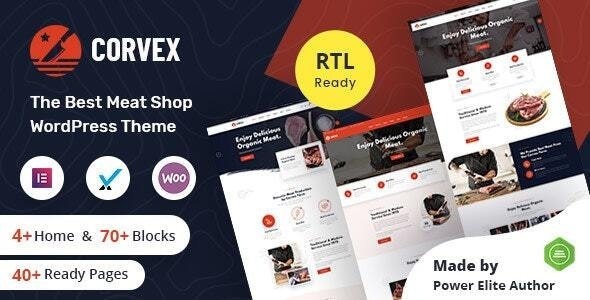 Corvex Nulled is a Meat shop WordPress theme that specially designed for Meat Shop, Chicken Shop, Mutton Shop, Fish, Sea Food, Meat Food Store, Butcher Steak House, Raw Meat Shop, Meat Meal, vegetable Shop, and others. It also fits for relevant websites that require a feature-rich and beautiful appearance online with a flexible and user-friendly design. The theme allows creating tons of your page layouts due to powerful Elementor Page Builder compatibility.