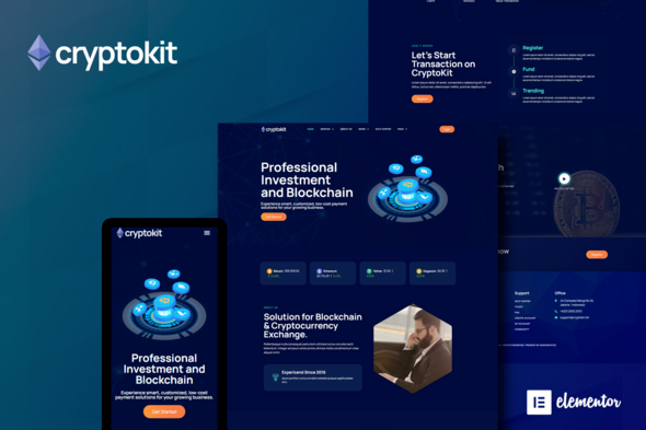 Cryptokit – Blockchain Cryptocurrency Elementor Template Kit