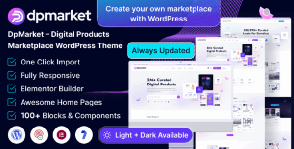 Welcome to DpMarket Nulled, the ultimate WordPress theme designed specifically for digital products marketplaces. Built with the powerful Elementor page builder, DpMarket offers a seamless and intuitive experience for creating a professional online marketplace for digital products such as eBooks, software, graphics, music, and more.