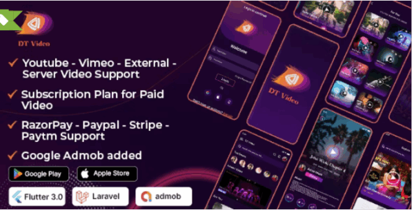 DTVideo v3.0.1 Flutter Multipurpose All In One Videos App + Admin panel
