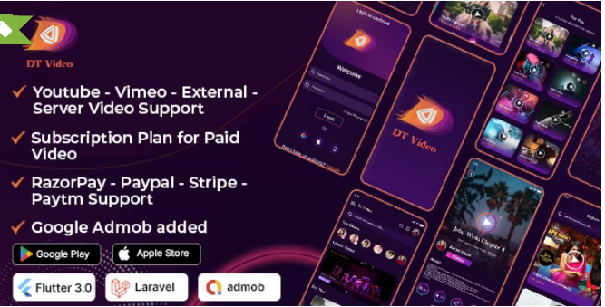 DTVideo Nulled is a powerful and versatile Flutter application that brings together an array of video content in one convenient platform. With support for both Android and iOS, this multipurpose app, combined with an intuitive admin panel, offers an all-in-one solution for video streaming, sharing, and management.