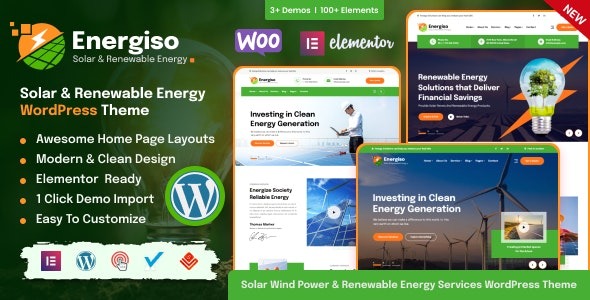 Elementor Page Builder: Energiso Theme is coded with beautiful and clean codes and the power of Elementor!