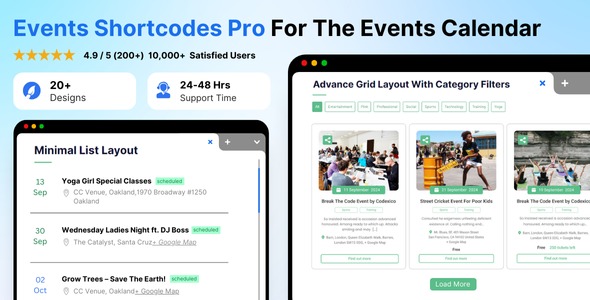 Events Shortcodes Pro For The Events Calendar Nulled is an addon for the Events Calendar plugin designed to add the missing shortcode functionality to The Events Calendar plugin. With this plugin, you can easily display your events on any page or post.