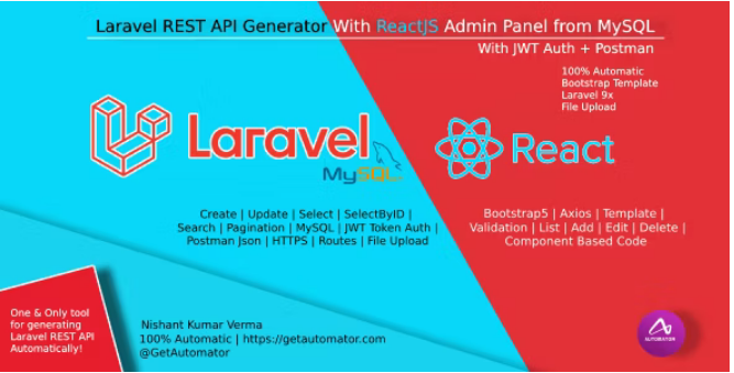 Laravel REST API Generator With React Admin Panel Generator + JWT Auth + Postman v3.0