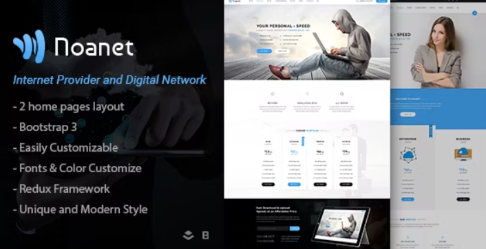 Noanet | Internet Provider and Digital Network WordPress Theme is awesome and clean Theme one / multi pages template. Noanet is designed to Internet Provider and Digital Network Companies. Noanet for your Web Hosting Business, a creative agency, Technology Websites or any company website!. Noanet theme support you many great tools to enable the features via using Theme Options, you also can customize Google fonts without code very easy and simple. Finally, every single element of in Noanet is entirely responsive, as content can be viewed from desktop and mobile devices.