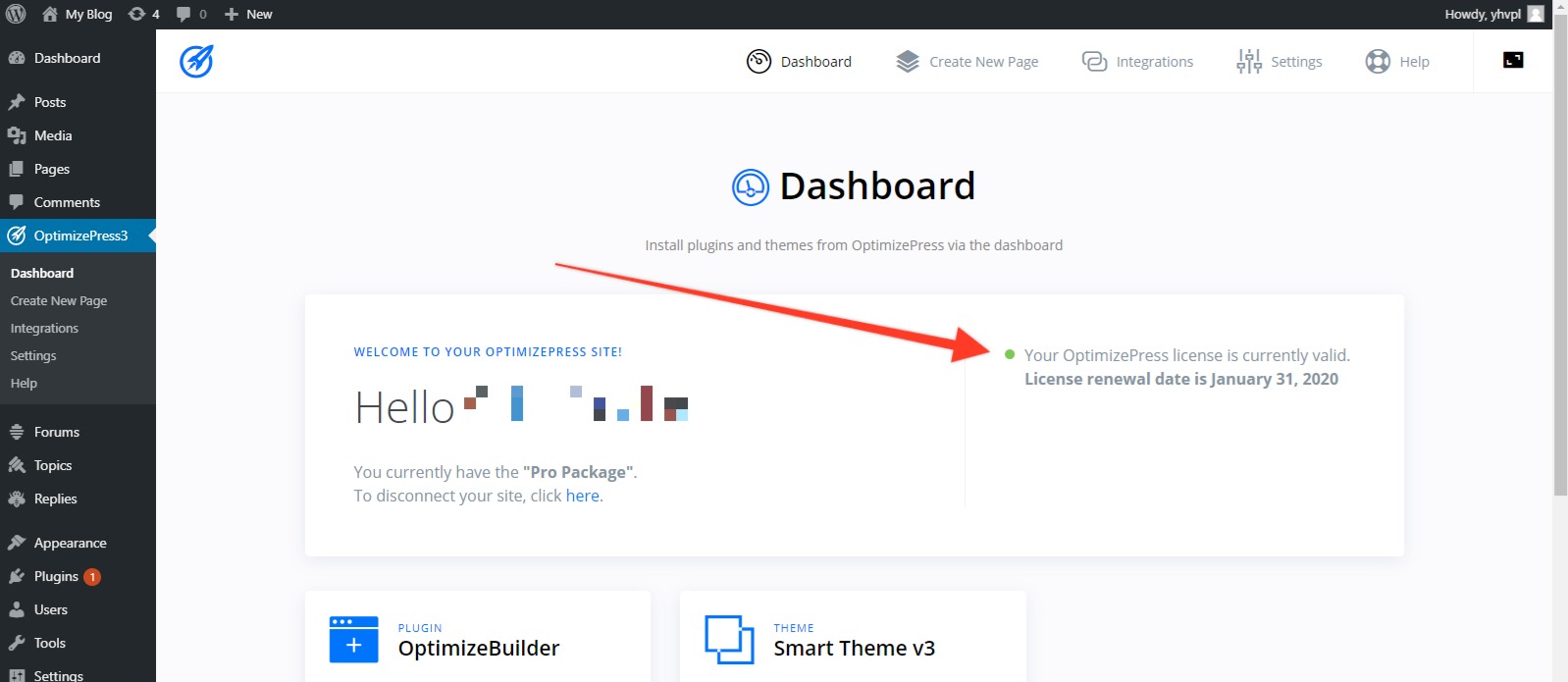 The OP3 Dashboard plugin houses all the settings for Integrations, licensing, and templates. The dashboard is linked directly to your OP3 account and also allows you to install other plugins such as the OptimizePress Builder, and other plugins we are currently working on.