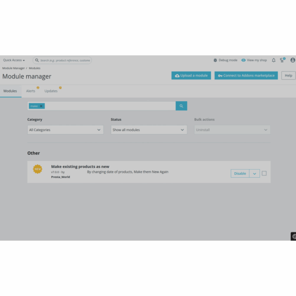 Most of the time merchant wants to show some selected items on home page as ‘New‘ but due to old age of the product, prestashop does not keep that product as ‘New‘, With the help of this module merchant can change product date and ‘Make Old Items As New‘, Merchant can also re-update product’s original date any time if they feel something wrong with their stats. Module keep original date of the product and can be reverted back any time by merchant.