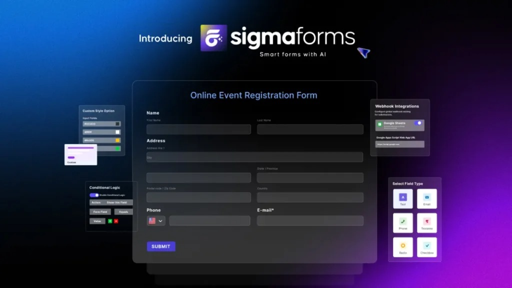 Build any WordPress form in minutes with Sigma Forms Nulled. Generate with AI, customize fields, and manage everything without coding.