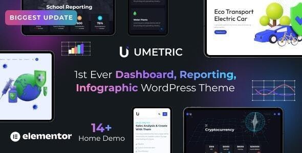 Umetric WordPress Dashboard, Reporting and Infographic Theme Nulled is a Reporting and Infographic theme for WordPress. Create beautiful presentation sites with various charts and data visualisation elements. Umetric is perfect for creating WordPress Dashboards, Marketing reports, Reporting SaaS landing pages, Data Visualization.