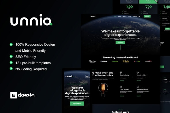 Unniq Nulled is Elementor Template Kit for digital agency and web developer. This template has cool layout with modern dark style design, unique and professional look. Suitable for any business related to creative agency and web development service. You can easily build modern creative agency website with unforgettable digital experience. Just drag and drop, no coding required.