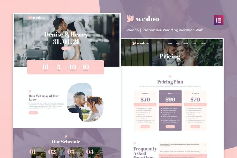 Wedoo Nulled is Elementor Template kit for Wedding Invitation and other similar businesses. With its beautiful design, and awesome, its the best fit for this Industry and business.