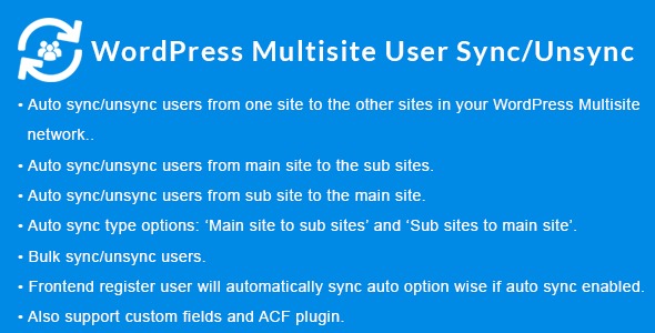 WordPress Multisite User Sync/Unsync plugin Nulled can sync/unsync users from one site (blog) to the other sites (blogs) in your WordPress Multisite Network.